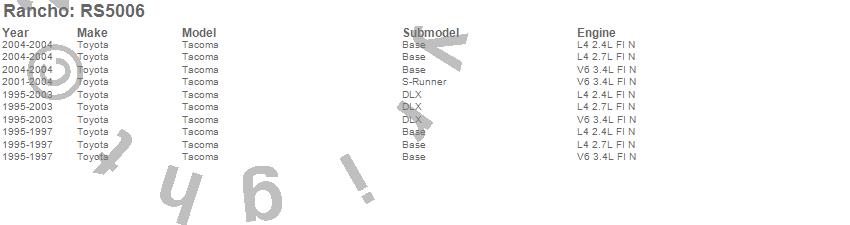 Below is an abreviated list of applications for the RS5000 Shock Absorber.