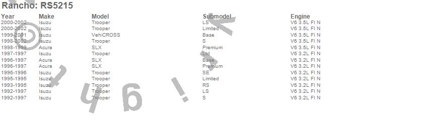 Below is an abreviated list of applications for the RS5000 Shock Absorber.