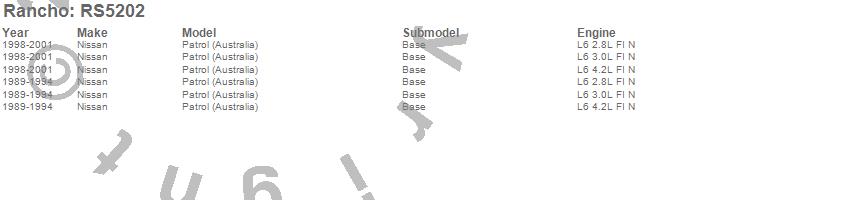 Below is an abreviated list of applications for the RS5000 Shock Absorber.
