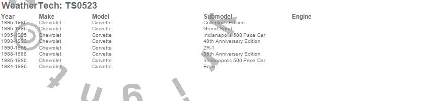 Below is an abreviated list of applications for the WeatherTech TechShade. Corvette, Chevrolet, 1996, 1995, 1994, 1993, 1992, 1991, 1990, 1989, 1988, 1987, 1986, 1985, 1984 more…