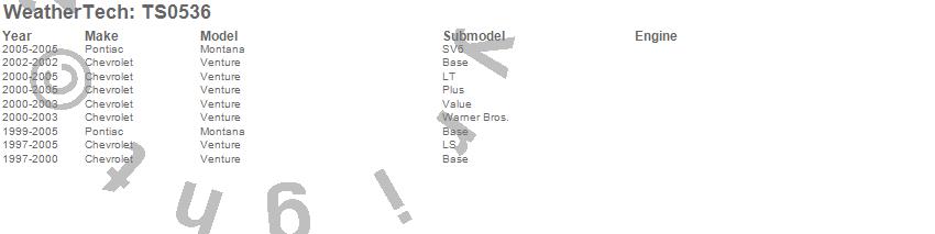Below is an abreviated list of applications for the WeatherTech TechShade. Montana, Venture, Chevrolet, Pontiac, 2005, 2004, 2003, 2002, 2001, 2000, 1999, 1998, 1997 more…