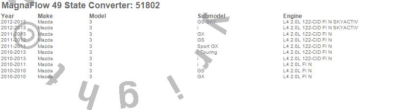 Below is an abreviated list of applications for the Direct Fit Catalytic Converter.