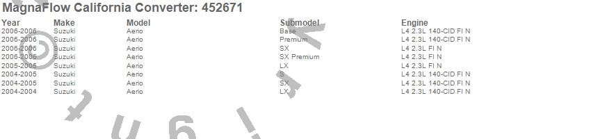 Below is an abreviated list of applications for the Direct Fit California Catalytic Converter.
