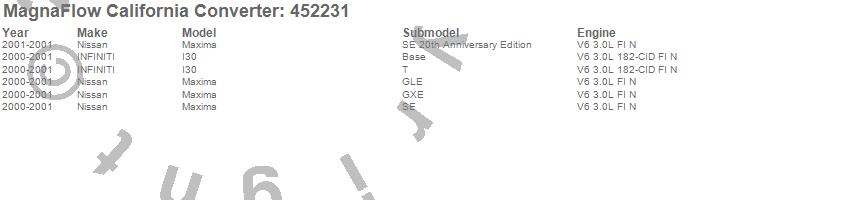 Below is an abreviated list of applications for the Direct Fit California Catalytic Converter.