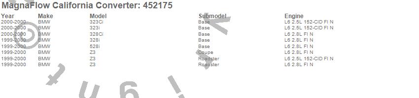Below is an abreviated list of applications for the Direct Fit California Catalytic Converter.