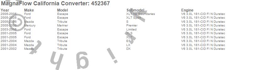 Below is an abreviated list of applications for the Direct Fit California Catalytic Converter.
