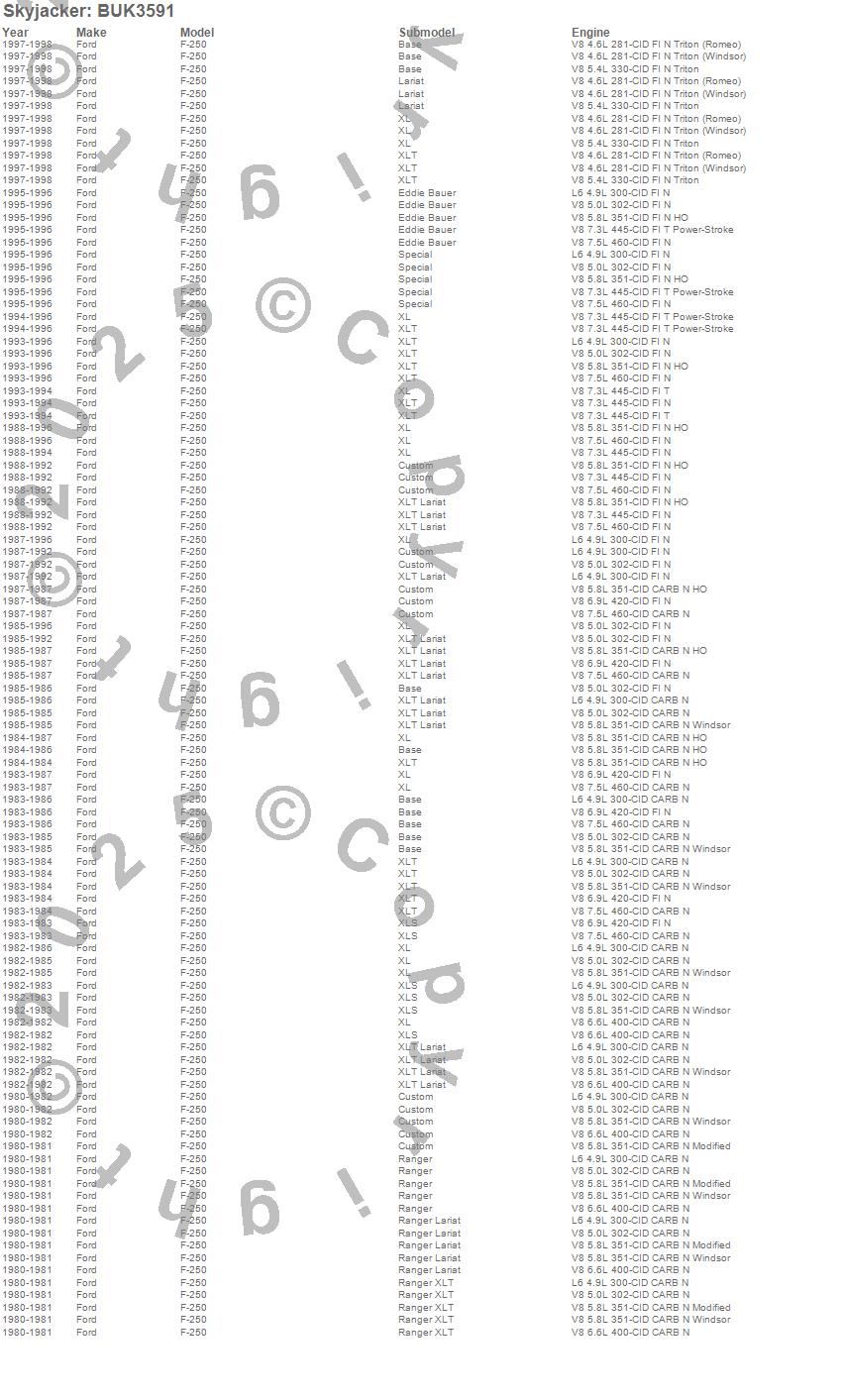 F-250, Ford, 1998, 1997, 1996, 1995, 1994, 1993, 1992, 1991, 1990, 1989, 1988, 1987, 1986, 1985, 1984, 1983, 1982, 1981 more…
