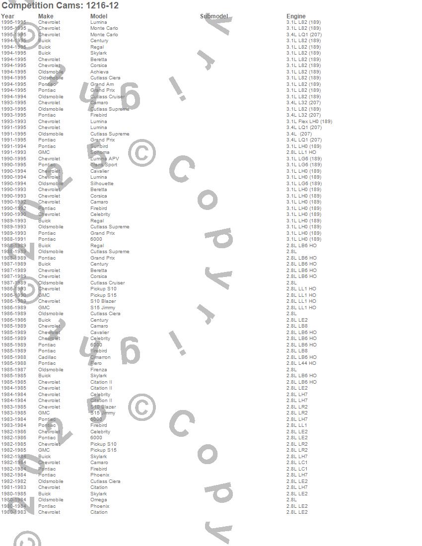 Below is an abreviated list of applications for the High Energy Rocker Arm Kit.