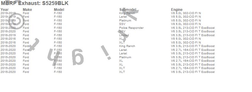 Below is an abreviated list of applications for the Black Series Cat Back Exhaust System.
