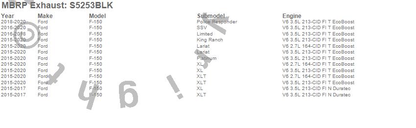 Below is an abreviated list of applications for the Black Series Cat Back Exhaust System.