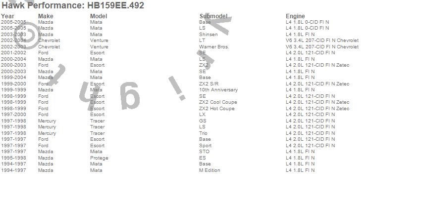 Below is an abreviated list of applications for the Disc Brake Pad.