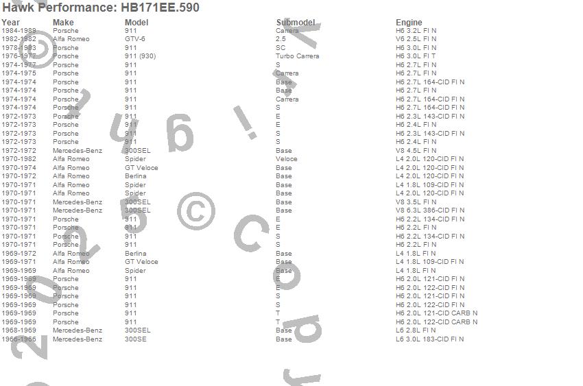 Below is an abreviated list of applications for the Disc Brake Pad.