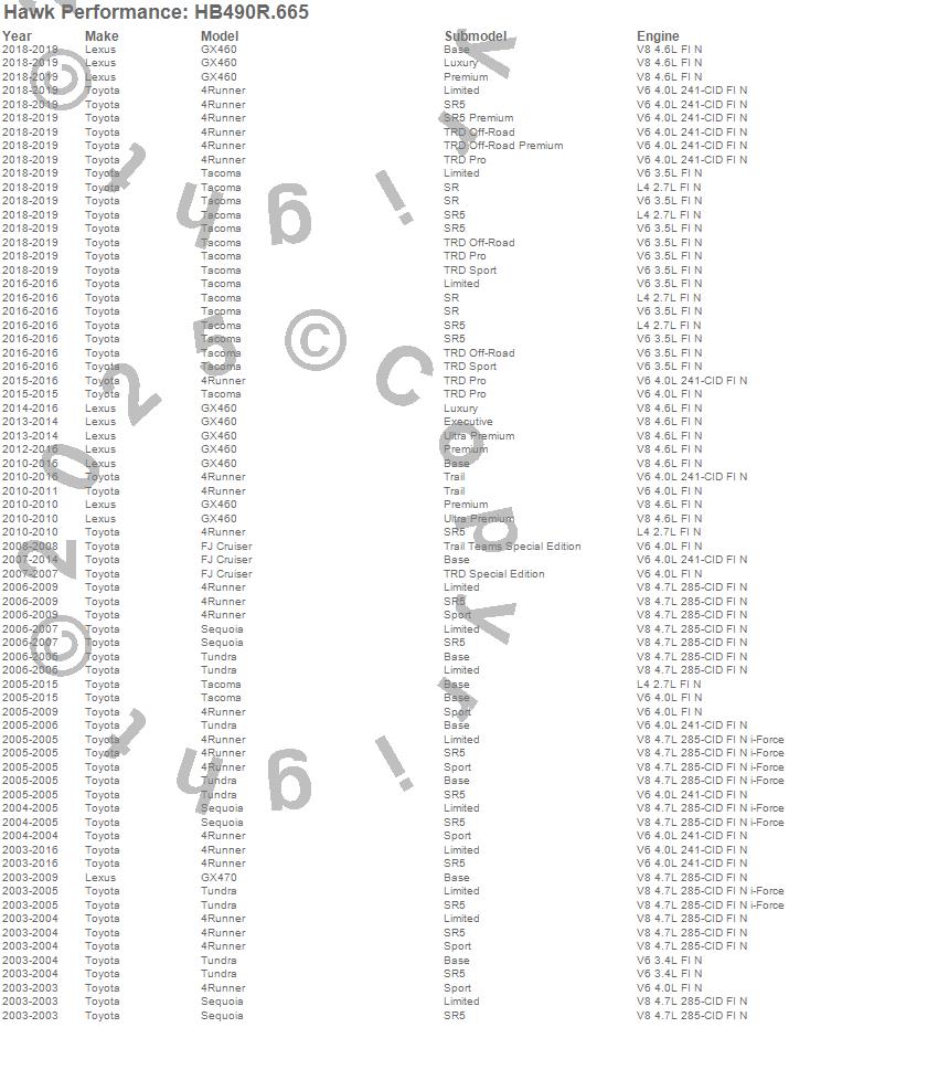 Hawk Performance Disc Brake Pad # HB490R.665 - Street Race w/0.665 Thickness - w/5.3 in. Brake Pad