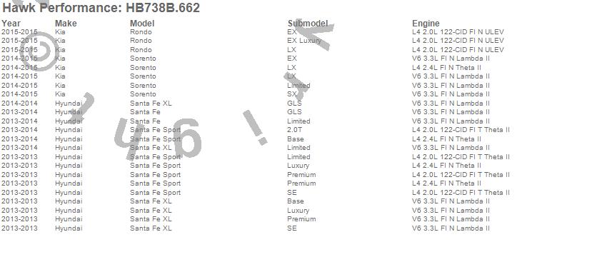 Below is an abreviated list of applications for the Disc Brake Pad.