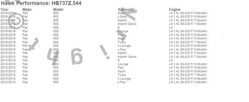 Below is an abreviated list of applications for the Disc Brake Pad.