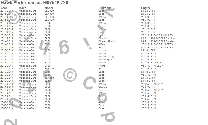 Below is an abreviated list of applications for the Disc Brake Pad.