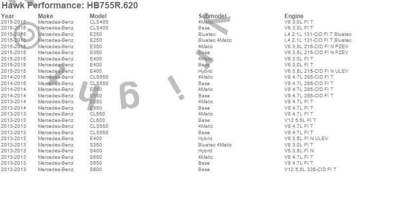 Below is an abreviated list of applications for the Disc Brake Pad.