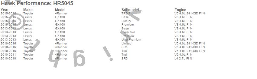Below is an abreviated list of applications for the Sector 27 Rotor.
