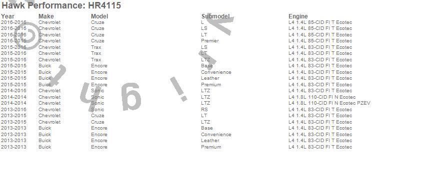 Below is an abreviated list of applications for the Sector 27 Rotor.