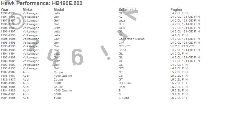 Below is an abreviated list of applications for the Disc Brake Pad.