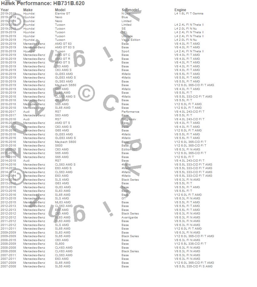 Below is an abreviated list of applications for the Disc Brake Pad.