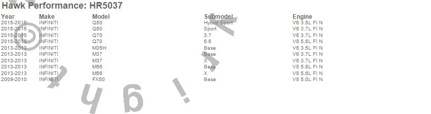 Below is an abreviated list of applications for the Sector 27 Rotor.