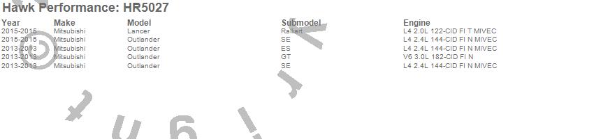 Below is an abreviated list of applications for the Sector 27 Rotor.