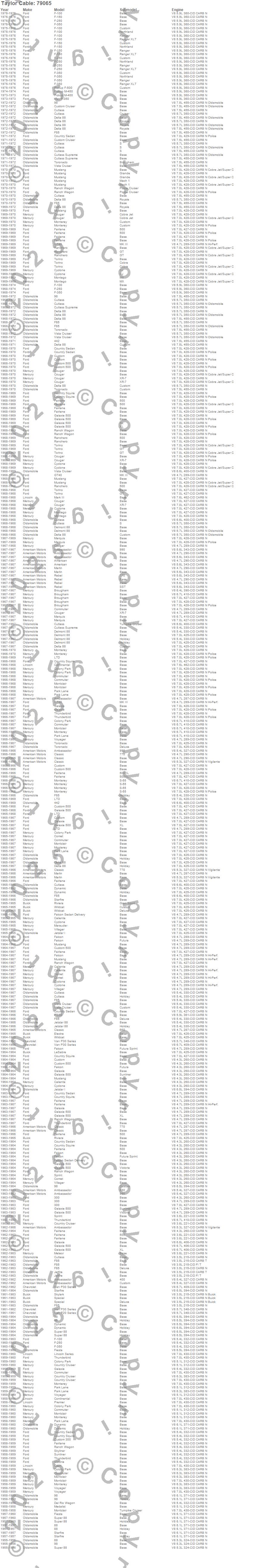 442, 88, 98, Ambassador, American, Breezeway, Brougham, C20 Pickup, C30 Pickup, Caliente, Capri, Classic, Club Cargo, Colony Park, Comet, Commuter, Continental, Cougar, Country Cruiser, Country Sedan more…