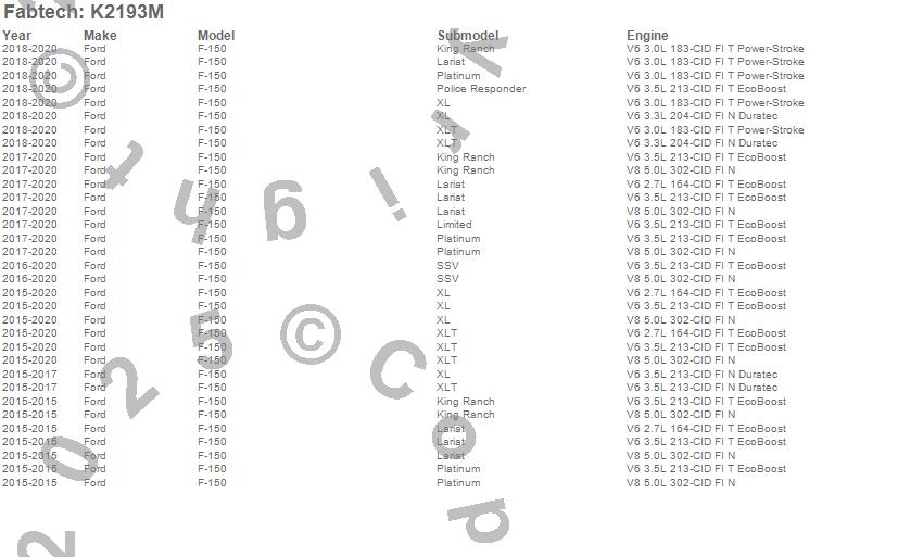 Fabtech Basic System K2193M Features: