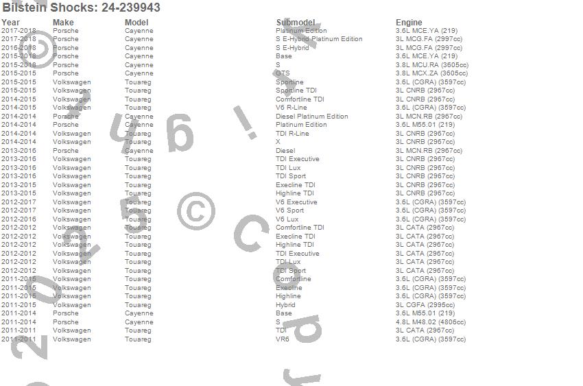 Below is an abreviated list of applications for the B6 Series HD Shock Absorber.