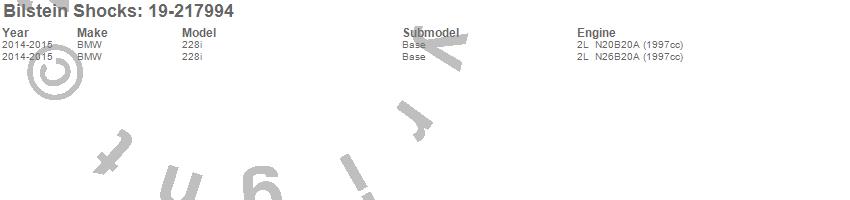 Below is an abreviated list of applications for the B4 Series OE Replacement Shock Absorber.