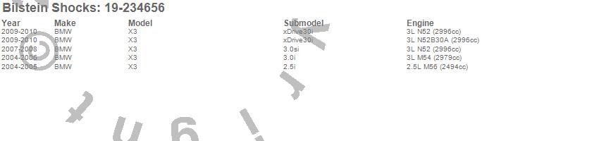 Below is an abreviated list of applications for the B4 Series OE Replacement Shock Absorber.