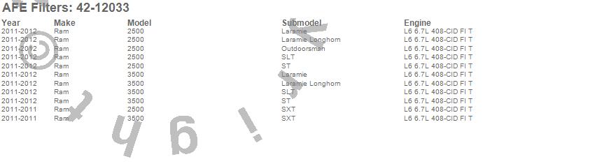 Below is an abreviated list of applications for the aFe Power DFS780 Series Diesel Fuel System.