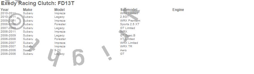 Below is an abreviated list of applications for the Stage 2 Cerametallic Clutch Disc.