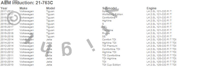 Below is an abreviated list of applications for the Cold Air Induction System.