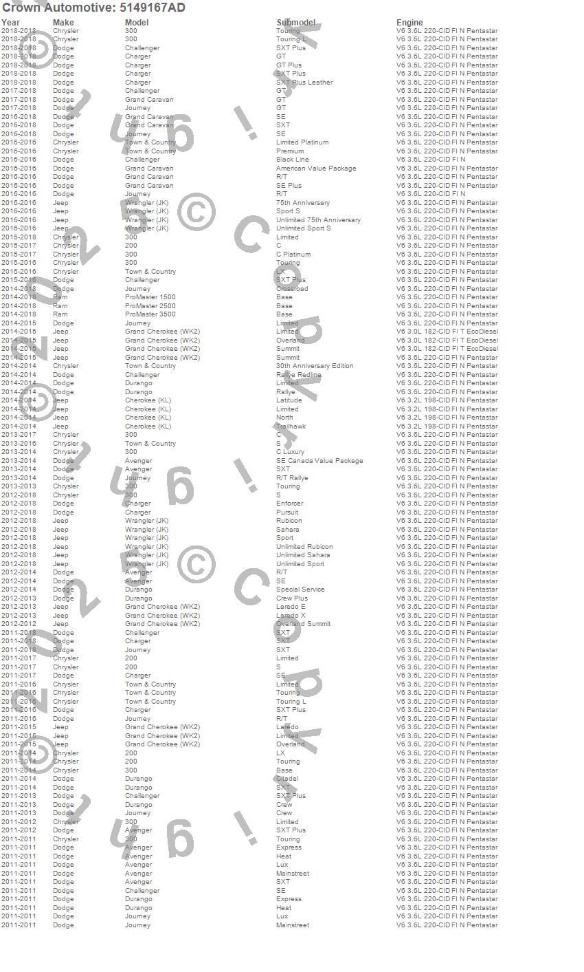 200, 300, Avenger, Challenger, Charger, Durango, Grand Cherokee (WK2), Journey, ProMaster 1500, ProMaster 2500, ProMaster 3500, Town & Country, Wrangler (JK), Chrysler, Dodge, Jeep, Ram, 2015, 2014, 2013 more…