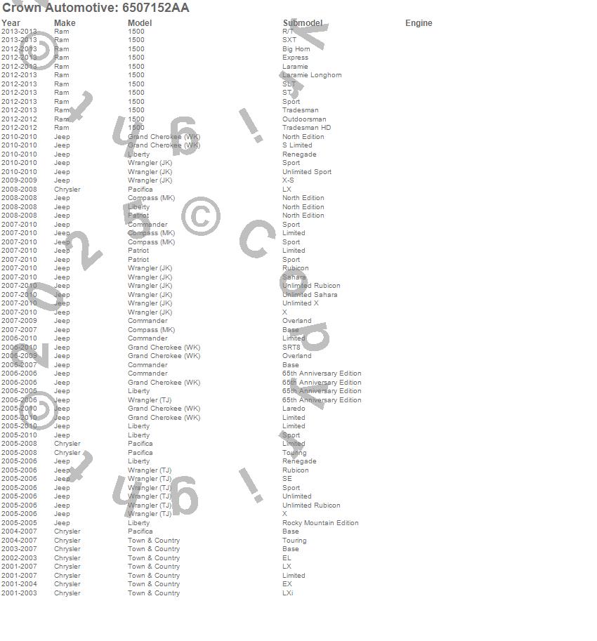 1500, Commander, Compass, Grand Cherokee (WK), Liberty, Pacifica, Patriot, Town & Country, Wrangler (JK), Wrangler (LJ), Wrangler (TJ), Chrysler, Jeep, Ram, 2013, 2012, 2010, 2009, 2008, 2007 more…