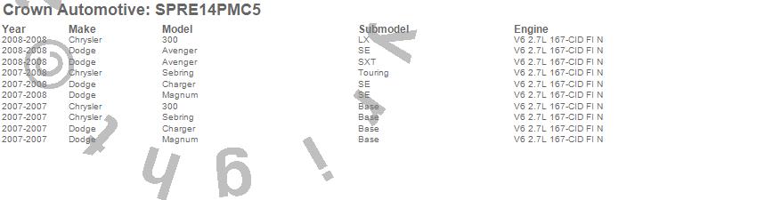 Crown Automotive Spark Plug SPRE14PMC5 Features: