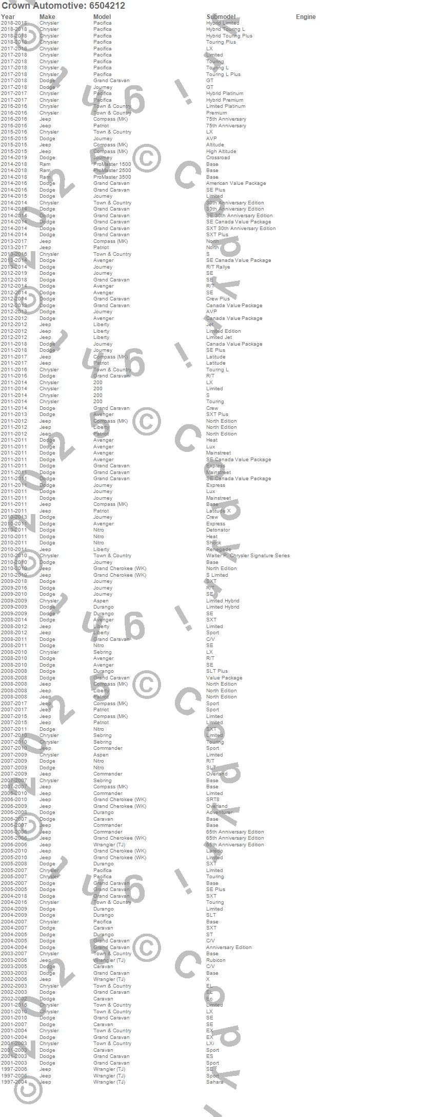 200, Avenger, Commander, Compass, Durango, Grand Cherokee (WK), Journey, Liberty, Nitro, Patriot, Sebring, Town & Country, Wrangler (TJ), Chrysler, Dodge, Jeep, 2015, 2014, 2013, 2012 more…