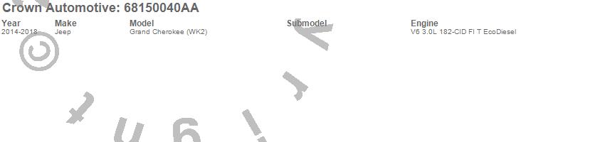 Crown Automotive is the premier manufacturer and distributor of quality replacement parts for Jeep® CJ™, Wrangler™, Cherokee™, Grand Cherokee™, Liberty™, and Commander™."From humble beginnings in 1963 in a small Boston storefront, Crown Automotive has consistently maintained its commitment to offering only quality parts and exceptional service. Today, with warehouses in Massachusetts, Georgia, Nevada, Spain, and the Czech Republic, totaling over 160,000 square feet, Crown Automotive continues to be the leader in quality replacement parts for Jeep® vehicles. With over 8,000 different parts in stock for Jeep® vehicles from 1942 on up, Crown has the largest stock of replacement parts for Jeep® vehicles, including factory-discontinued parts. In fact, many of the older Jeeps are still on (and off) the road thanks to Crown parts. The Crown line consists of axle, body, brake, clutch, cooling, driveline, electrical, engine, exhaust, fuel, steering, suspension, transmission and transfer case components. Crown Automotive also offers an exclusive line of component kits and accessory products. Because we know that Jeeps are driven harder than most other vehicles, we emphasize offering only quality parts. In fact, we test parts on Jeeps before distributing them to our dealers to insure that they meet our standards for quality. Crown also supports its entire line with a 12 month/12,000 mile warranty to insure our dealers and their customers of our commitment to offering quality parts. We know from experience that Jeep® owners would rather pay a little more for a good quality part that's backed by a strong guarantee. But we know that price is important as well. So, not only will you find Crown parts to be of exceptional quality, but you'll find them at a great price too.