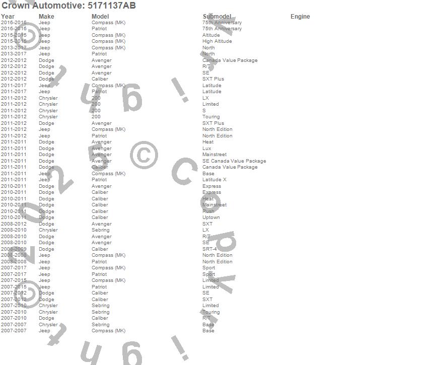 200, Avenger, Caliber, Compass, Patriot, Sebring, Chrysler, Dodge, Jeep, 2016, 2015, 2014, 2013, 2012, 2011, 2010, 2009, 2008, 2007 more…