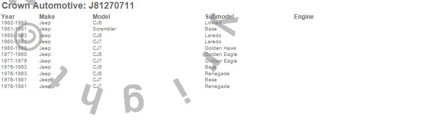 Crown Automotive is the premier manufacturer and distributor of quality replacement parts for Jeep® CJ™, Wrangler™, Cherokee™, Grand Cherokee™, Liberty™, and Commander™."From humble beginnings in 1963 in a small Boston storefront, Crown Automotive has consistently maintained its commitment to offering only quality parts and exceptional service. Today, with warehouses in Massachusetts, Georgia, Nevada, Spain, and the Czech Republic, totaling over 160,000 square feet, Crown Automotive continues to be the leader in quality replacement parts for Jeep® vehicles. With over 8,000 different parts in stock for Jeep® vehicles from 1942 on up, Crown has the largest stock of replacement parts for Jeep® vehicles, including factory-discontinued parts. In fact, many of the older Jeeps are still on (and off) the road thanks to Crown parts. The Crown line consists of axle, body, brake, clutch, cooling, driveline, electrical, engine, exhaust, fuel, steering, suspension, transmission and transfer case components. Crown Automotive also offers an exclusive line of component kits and accessory products. Because we know that Jeeps are driven harder than most other vehicles, we emphasize offering only quality parts. In fact, we test parts on Jeeps before distributing them to our dealers to insure that they meet our standards for quality. Crown also supports its entire line with a 12 month/12,000 mile warranty to insure our dealers and their customers of our commitment to offering quality parts. We know from experience that Jeep® owners would rather pay a little more for a good quality part that's backed by a strong guarantee. But we know that price is important as well. So, not only will you find Crown parts to be of exceptional quality, but you'll find them at a great price too.