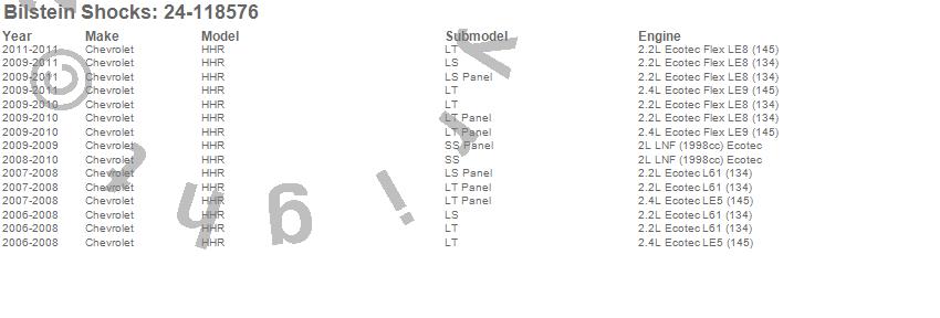 Below is an abreviated list of applications for the B6 Series HD Shock Absorber.