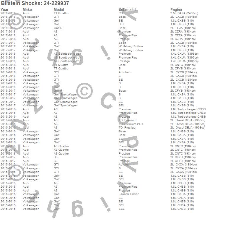 Below is an abreviated list of applications for the B8 Series SP Shock Absorber.