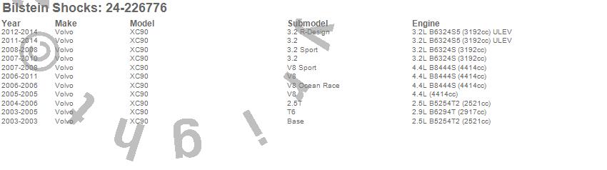 Below is an abreviated list of applications for the B4 Series OE Replacement Shock Absorber.