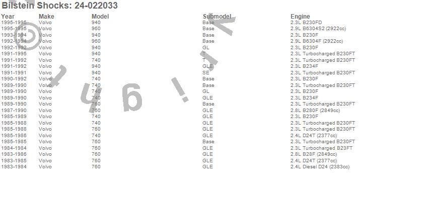 Below is an abreviated list of applications for the B6 Series HD Shock Absorber.