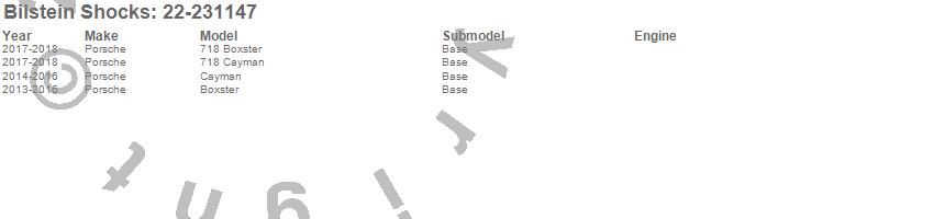 Bilstein Shocks B4 Series OE Replacement Suspension Strut Assembly 22-231147 Features: