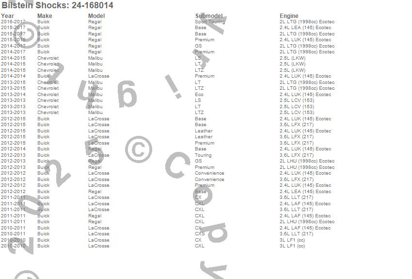 Below is an abreviated list of applications for the B6 Series HD Shock Absorber.