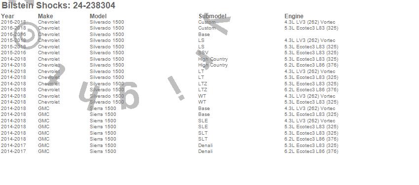 Below is an abreviated list of applications for the 5100 Series Ride Height Adjustable Shock Absorber.