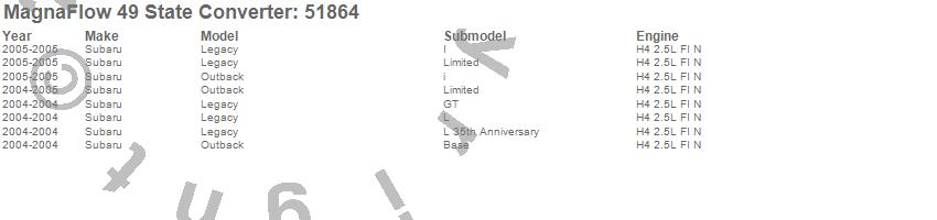 Below is an abreviated list of applications for the Direct Fit Catalytic Converter.
